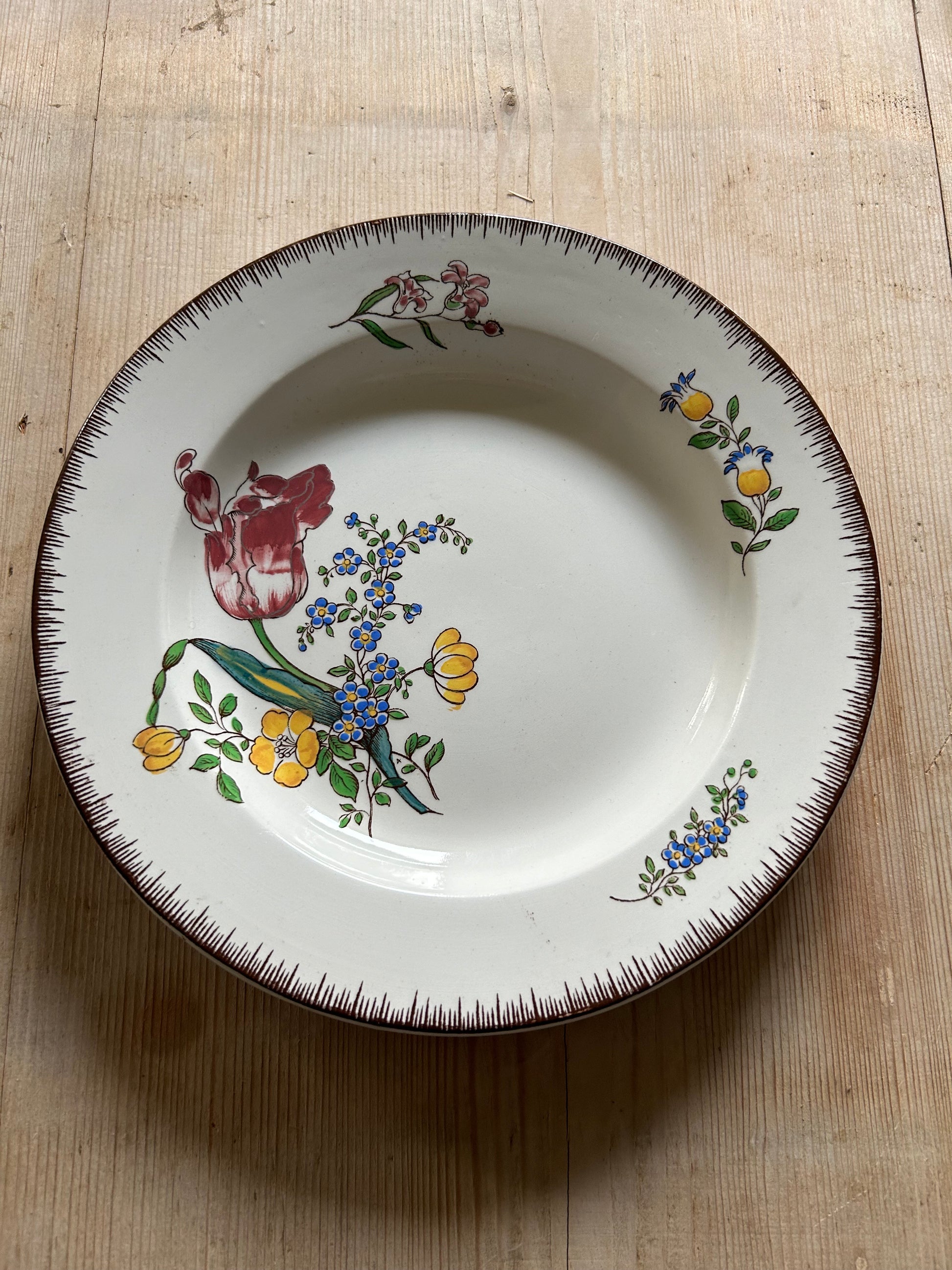 Magnifique lot de 6 assiettes plates à fleurs de modèle Strasbourg. Idéale pour une table élégante et chaleureuse, ou pour apporter une touche d’authenticité à votre intérieur. Parfaite pour accompagner votre service de style Strasbourg avec ravier, petites et grandes assiettes.