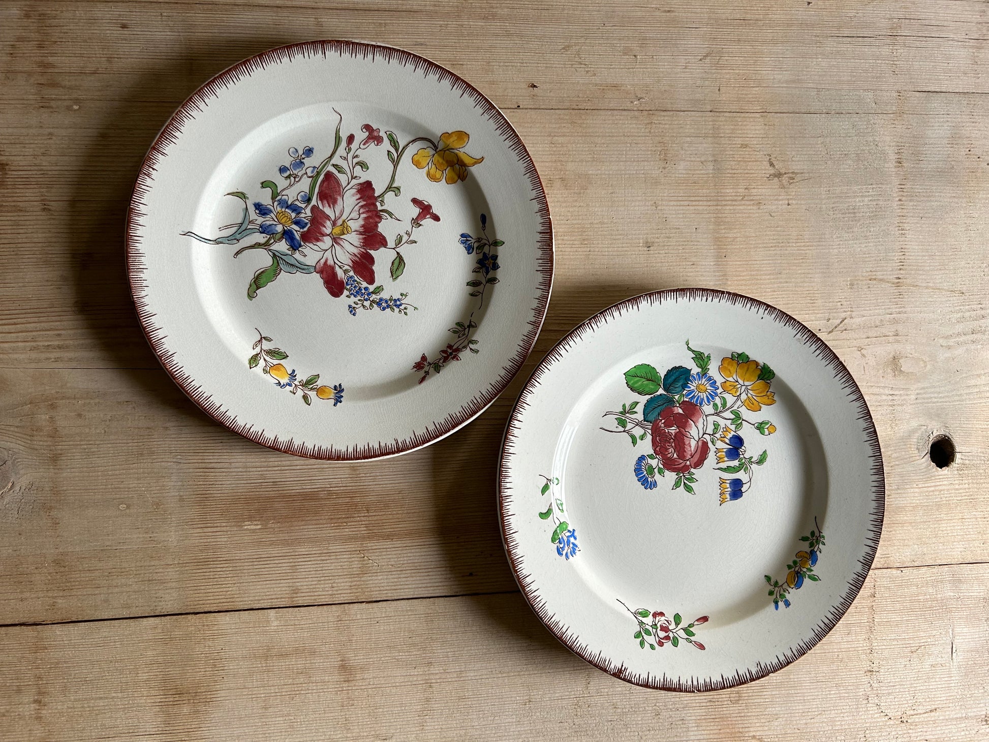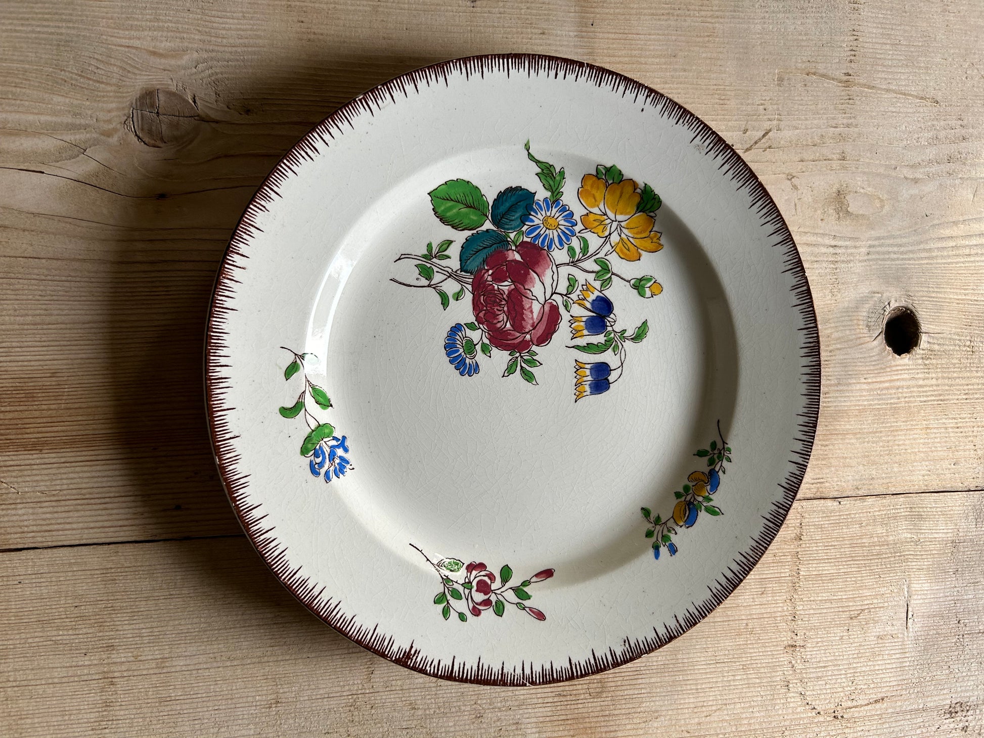 Magnifique lot de 6 assiettes plates à fleurs de modèle Strasbourg. Idéale pour une table élégante et chaleureuse, ou pour apporter une touche d’authenticité à votre intérieur. Parfaite pour accompagner votre service de style Strasbourg avec ravier, petites assiettes et assiettes à soupe.